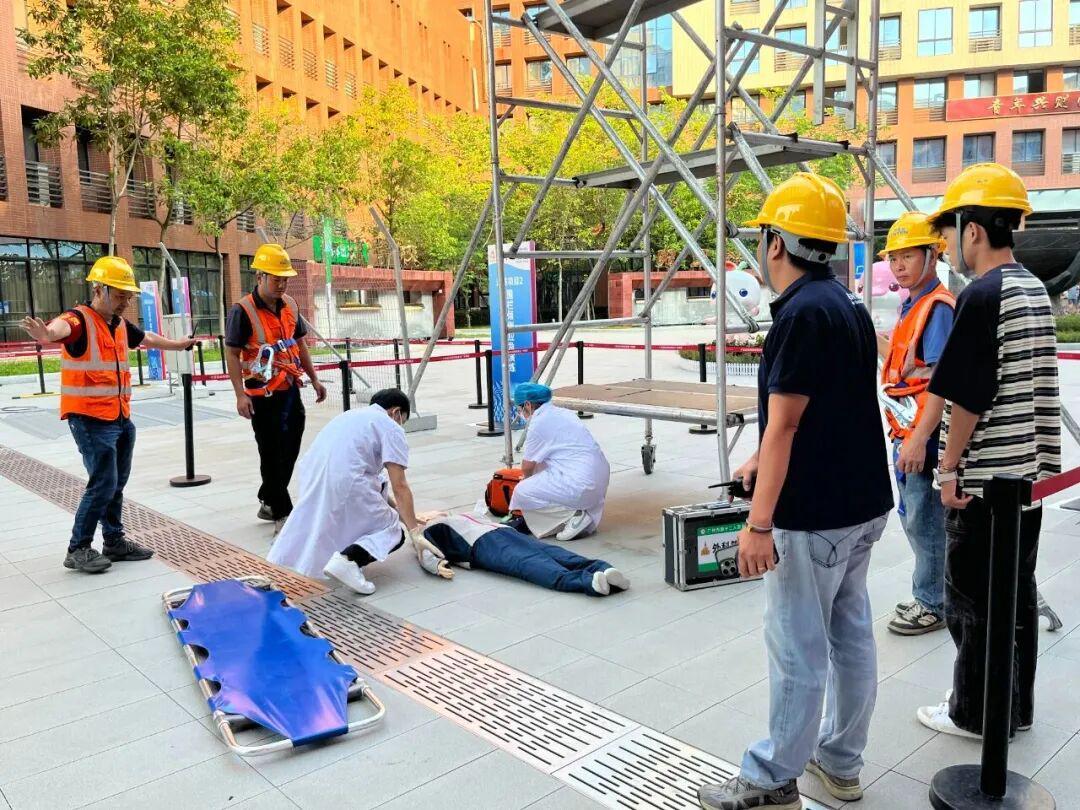 应急演练活动设置高处坠落、触电、围栏倾倒、高温中暑等四个演练科目,通过模拟真实突发事件,检验应急流程的熟悉情况、反应速度和联动性,提高各方协调配合与应急处置能力。各参演单位和人员反应迅速、高效联动、处置规范,达到了预期效果。